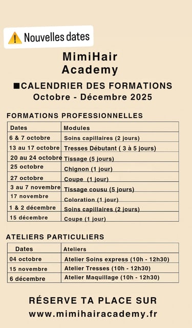 Découvrez nos tarifs pour les modules de formation en coiffure afro et inscrivez-vous en ligne.